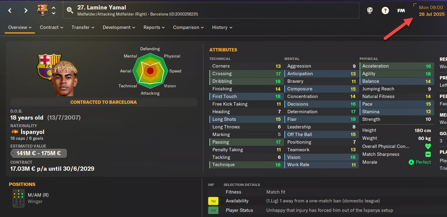In addition to CA/PA changes, the update also includes detailed attribute adjustments. Player stats such as finishing, passing, pace, and other key attributes have been aligned with their FM26 profiles to ensure a more realistic and up-to-date gameplay experience.