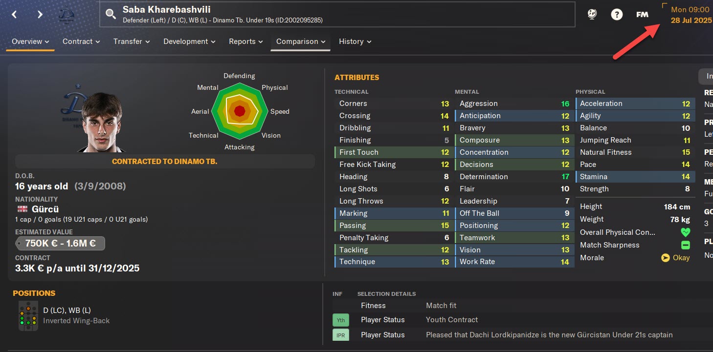 Saba Kharebashvili FM26 Profile