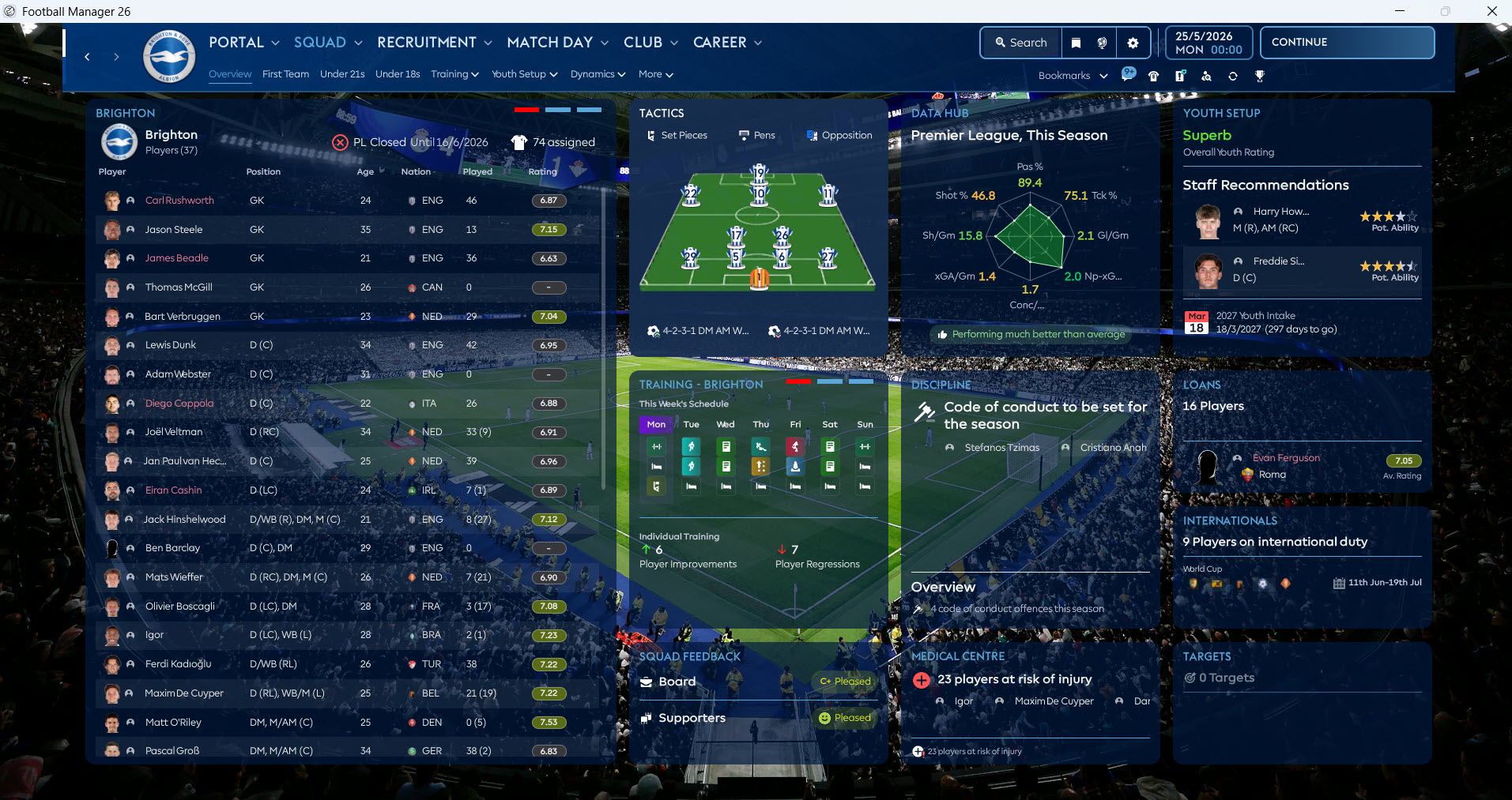 We continue our Football Manager skin series with the ASF Skin, which has been updated after the winter transfer update for Football Manager 26. The FM26 ASF Skin aims to attract Football Manager players with its unique interface and design elements.