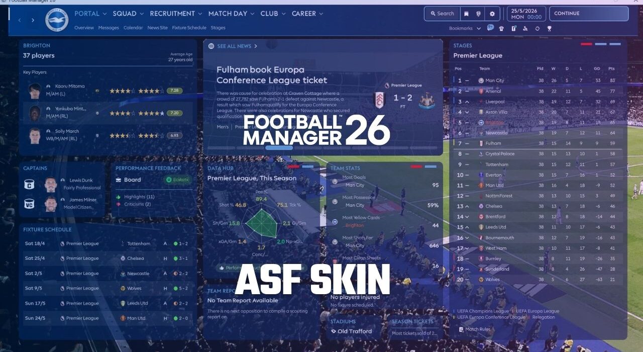 Before moving on to the installation steps — which differ slightly from the standard skin installation process commonly used in Football Manager titles — let’s take a look at the screenshots and key features of the ASF Skin.